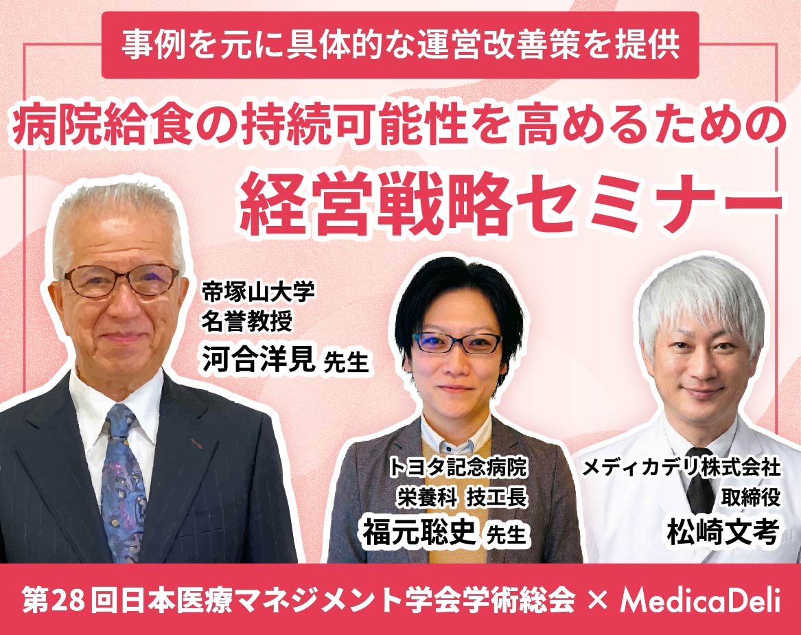 メディカデリではこれからの持続可能で最適な病院食のために、さまざまな役立つテーマのセミナーを弊社「病院食ラボ」などの現地会場やWebで開催させていただいております。