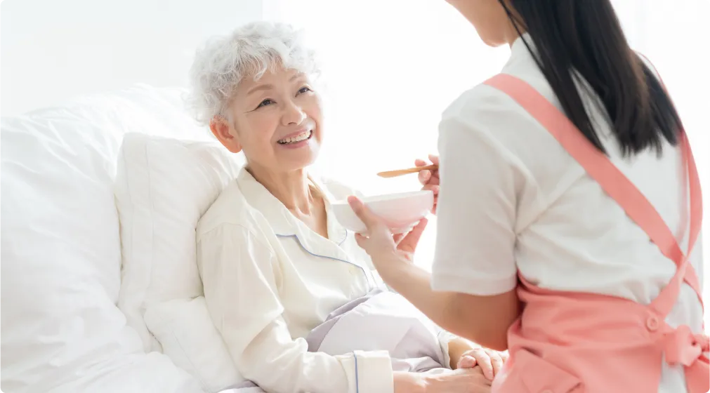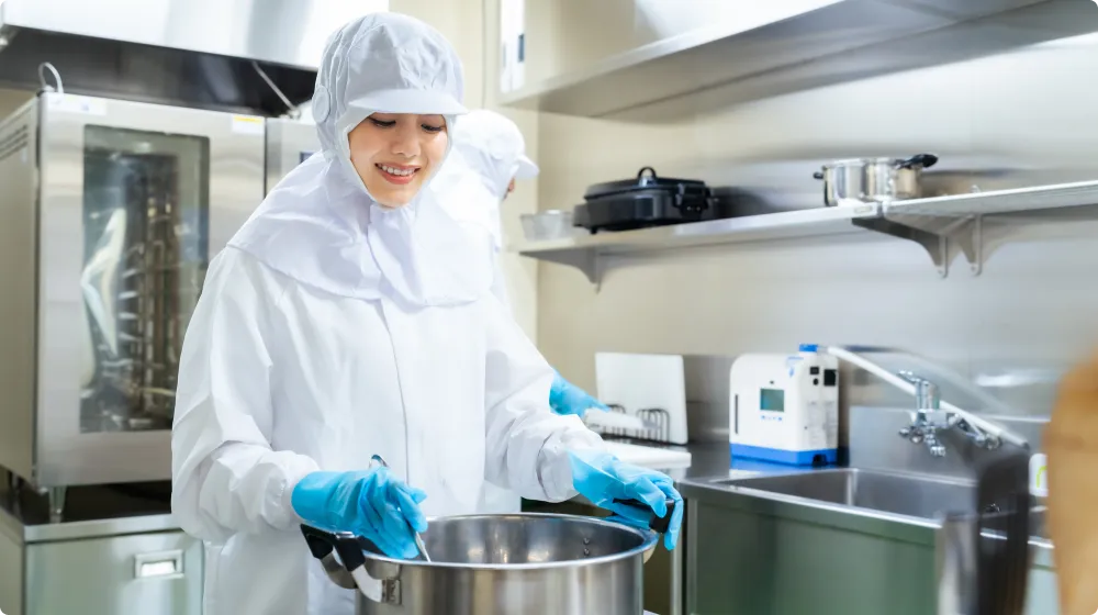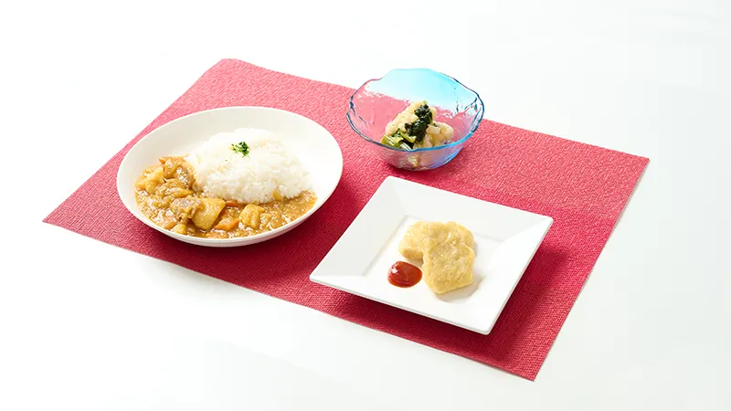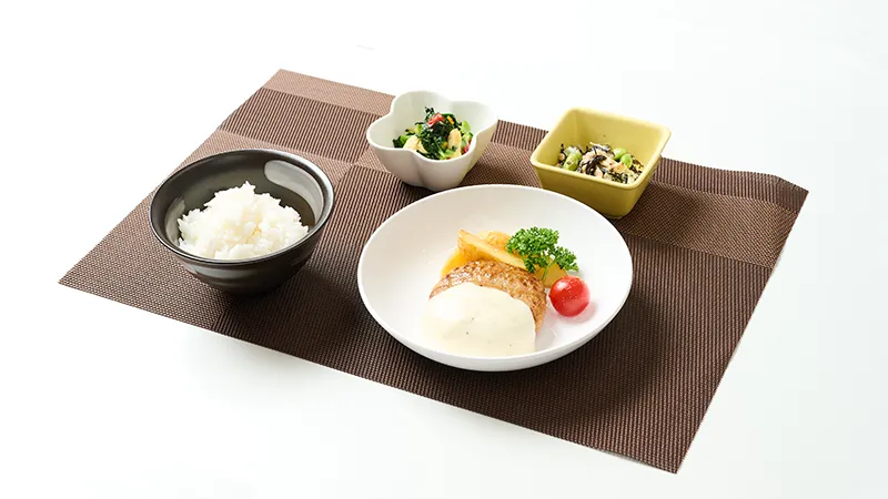 おいしさと栄養のバランスを追求 病院食である以上まず患者さまに合わせた栄養バランスが最優先であるべきですが、一方でおいしく召し上がっていただきたいという思いもあります。そこで私たちはプロの料理研究家の監修と、レシピ段階からの管理栄養士の関与で、おいしさと栄養バランスの両立を独自製法により実現しています。
