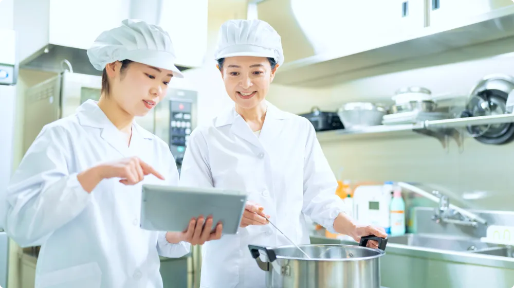 人手不足の解消にも寄与メディカデリの病院食は、厨房業務のさまざまな業務を効率化、省人化してくれるので、これまでの業務がより最少人員でできるようになるだけではなく、ひとつずつの業務シフトの時間も効率化してくれます。これにより、人手不足や人員が集まりにくい時間帯の解消にも寄与してくれます。